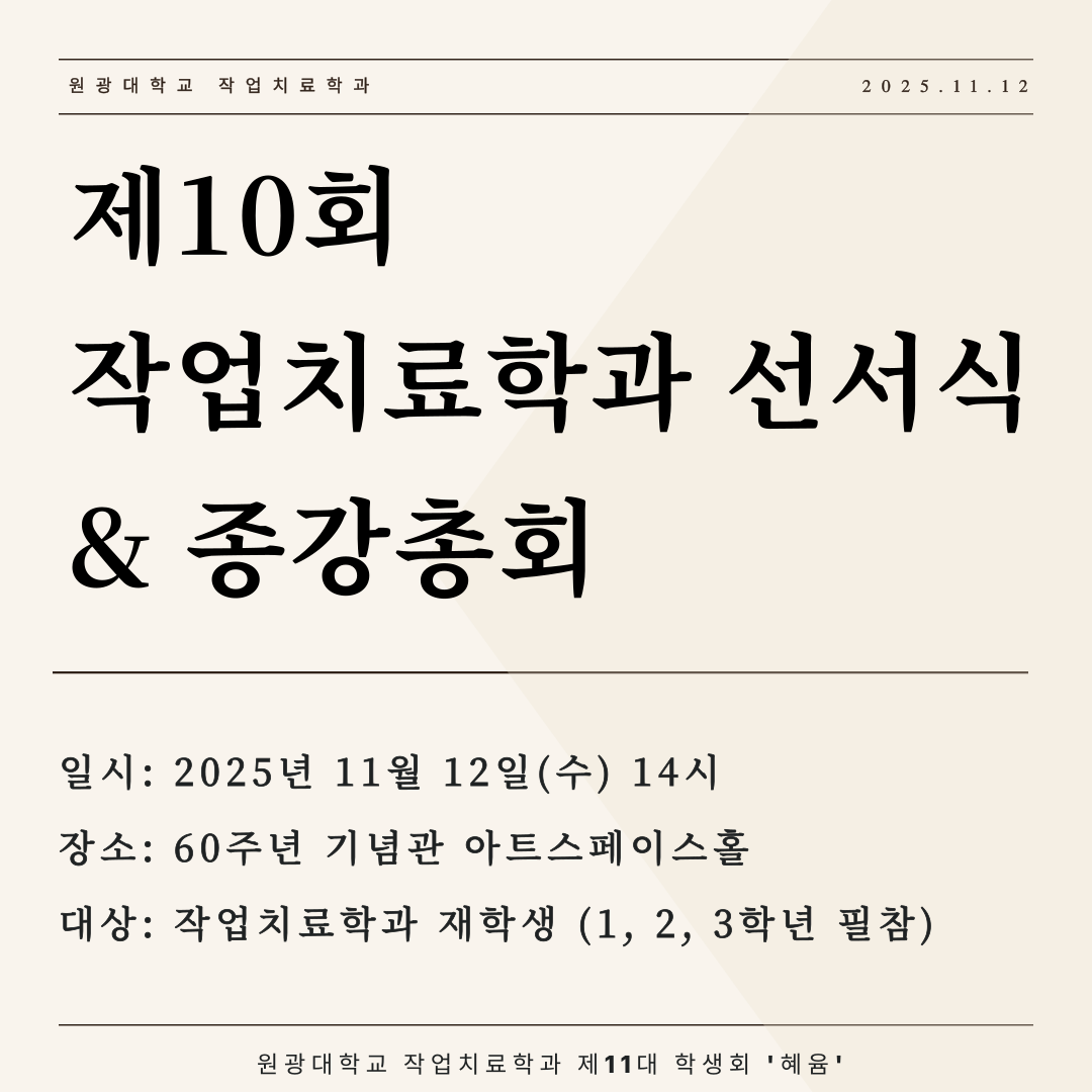 | (2025.11.12) 작업치료 선서식, 종강총회 공지 | |
